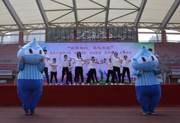 3月29日,我校在庄重文夫人体育场举行“诚挚相约,毅起奔跑”2017年亚洲中文精品乱码“走下网络、走出宿舍、走向操场”(以下简称“三走”)主题群众性课外体育锻炼活动启动仪式。全校1000多名学生通过学院组队、学生社团组队和自主报名三种方式参加了启动仪式。
