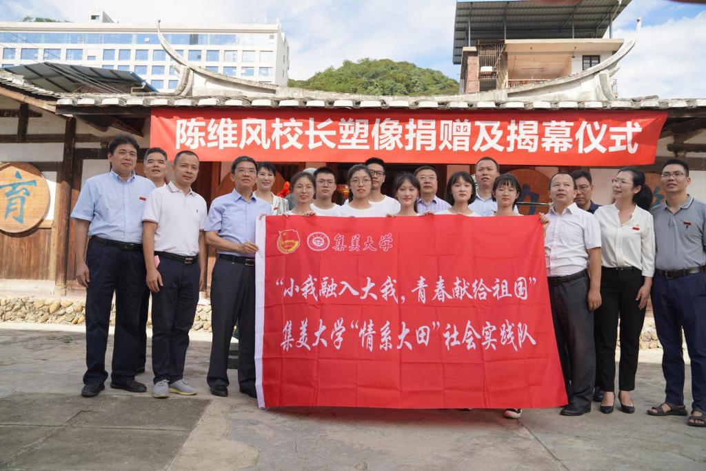 在大田期间,李清彪指出,抗战时期大田人民无私的支持与帮助,延续了集美学校水产航海、商业、农林专业的办学,双方由此结下了山海烽火情。他表示,今年是脱贫攻坚全面收官之年,学校将充分发挥自身优势,进一步深化与大田的对口支持协作,确保各项举措取得更大成效,助力大田脱贫攻坚。双方举行了陈维风塑像捐赠、揭幕仪式及捐款仪式,相关部门分头对接洽谈了下一步工作计划。李清彪一行还实地参观了大田县职专,看望了我校“情系大田”社会实践队。大田县领导连仁魁、施正立、陈剑生参加了上述有关活动。