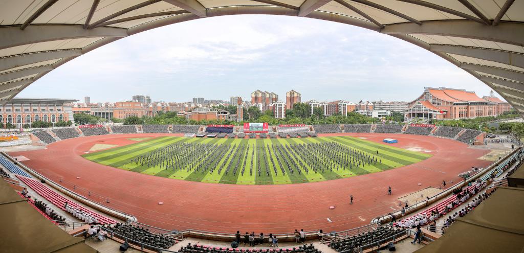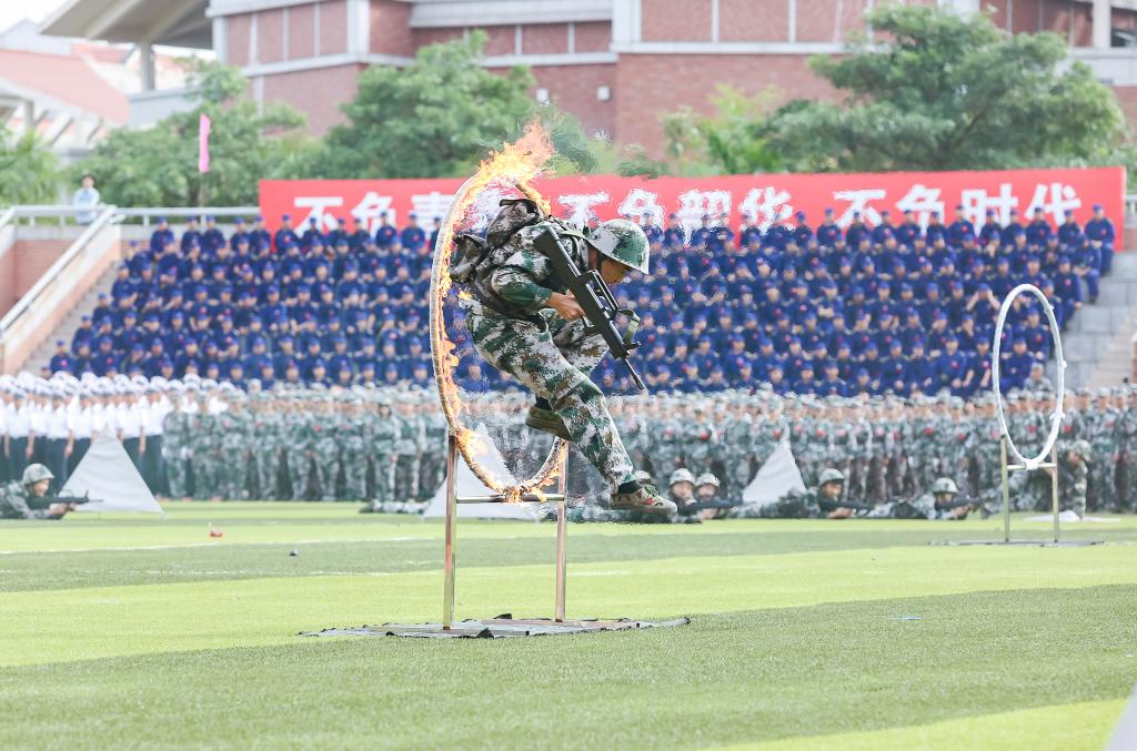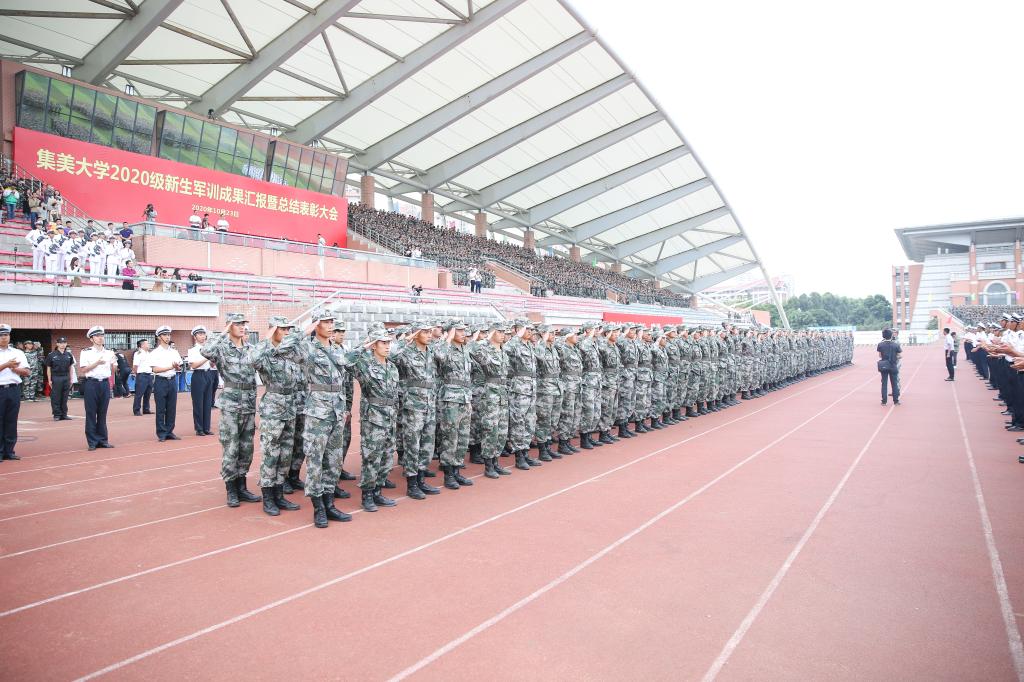 10月23日下午,2020级新生军训成果汇报暨总结表彰大会在庄重文夫人体育场超燃上演。
