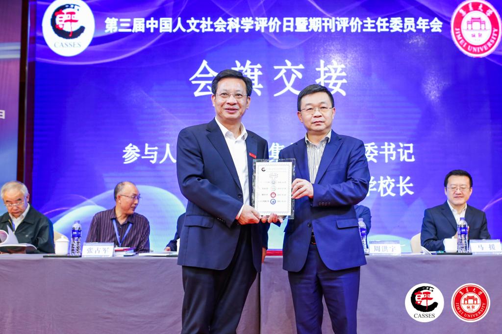 会上表彰了优秀咨询委员、优秀学科主任委员、优秀学科专家委员和学科助理,并举行会旗交接仪式,第四届中国人文社会科学评价日暨期刊评价主任委员年会将于明年10月23日(十月的第四个周六)在美丽的塞上江南——北方民族大学举行。