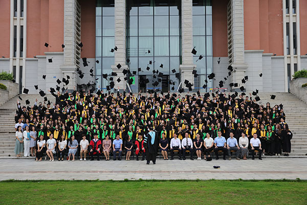 毕业典礼在中美两国庄严的国歌声和两校优美的校歌声中拉开帷幕。