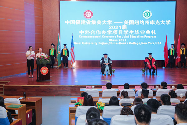 6月5日上午,我校与美国库克大学中外合作办学项目2021届学生毕业典礼举行。库克大学中国总校区校长黄天中,我校副校长曹敏杰,学校办公室、学生处、国际合作交流处、教务处、基建与后勤管理处、海外教育学院相关领导、老师,库克项目教师代表、学校后勤服务工作人员和2021届、2020届毕业生及家长参加现场毕业典礼。