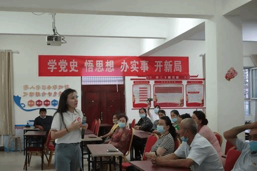 为传承爱国情怀,把嘉庚精神传递到祖国的边陲,课堂上,实践队队员通过播放“嘉庚”视频、讲述“嘉庚”故事等互动方式,诠释嘉庚精神、介绍百年集大,传递爱国情怀。实践队队员还通过现场茶艺、博饼展示活动等多种形式分享不一样的闽南文化,在茶香和骰子声中,增进了闽疆文化交流,把闽南地区的地域文化带到了天山脚下。为感受中华一家亲的民族情,实践队队员带领当地学生一起诵读毛泽东的《浣溪沙·和柳亚子》,深入了解中华诗词中的新中国和民族团结,并分享经典闽南语歌曲《爱拼才会赢》,传递中华民族的拼搏精神。