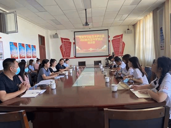教育是推动少数民族地区发展的关键。实践期间,实践队不仅实地走访当地教育局,调研了解少数民族学生教育的基本情况,还前往吾夏艾日克村开展“第三课堂”,发挥专业特长助力乡村教育振兴。在吉木萨尔县教育局,队员们通过与教育工作者面对面交流了解到,国家对少数民族地区教育政策的强有力支持使得少数民族地区师资不断加强,教学质量稳步提升,“送教”“送课”成了民族间力量帮扶、增进情谊的重要纽带。