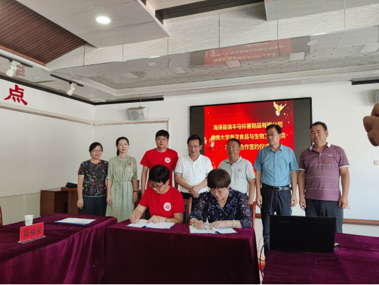 实践队实践期间,我校海洋食品与生物工程学院与海原县瑞丰马铃薯有限公司共同签署产学研合作协议。