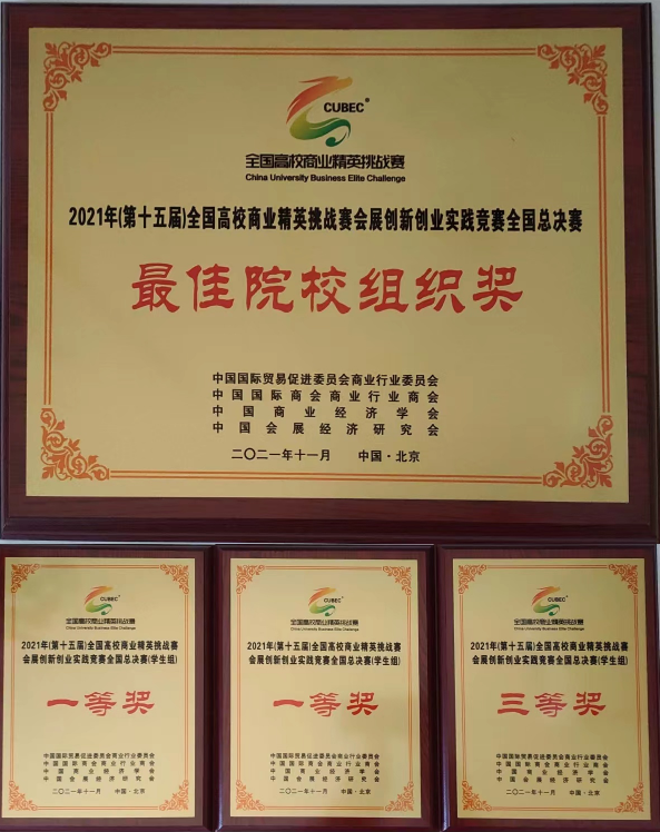近日,第十五届全国高校商业精英挑战赛会展专业创新创业实践竞赛举办线上颁奖典礼。我校在全国总决赛中获得2个一等奖,1个三等奖的好成绩。学校获得“最佳院校组织奖”荣誉。