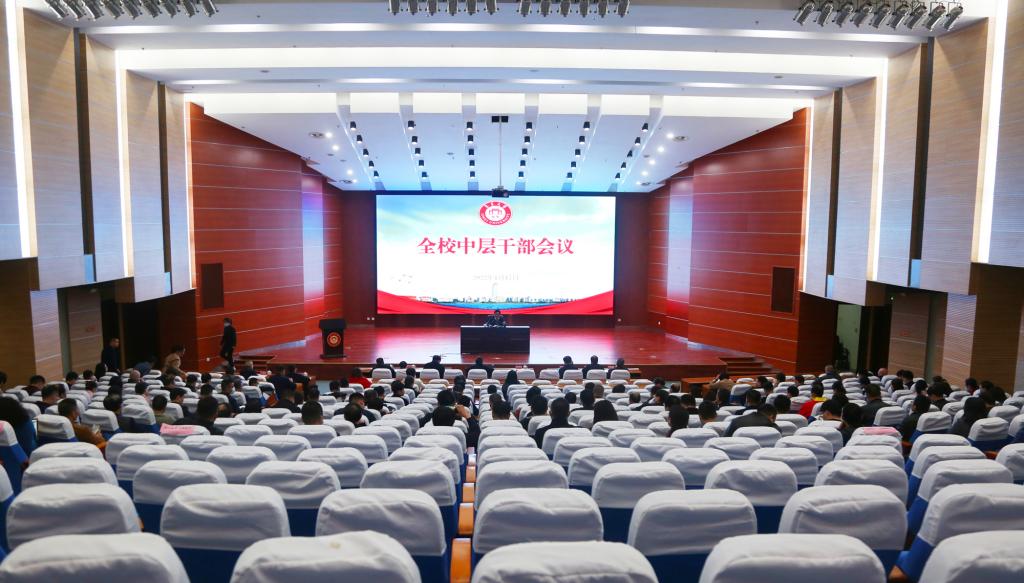 1月17日下午,我校召开全校中层干部会。全体校领导,机关部处及教辅机构、各学院副处级及以上干部参会。