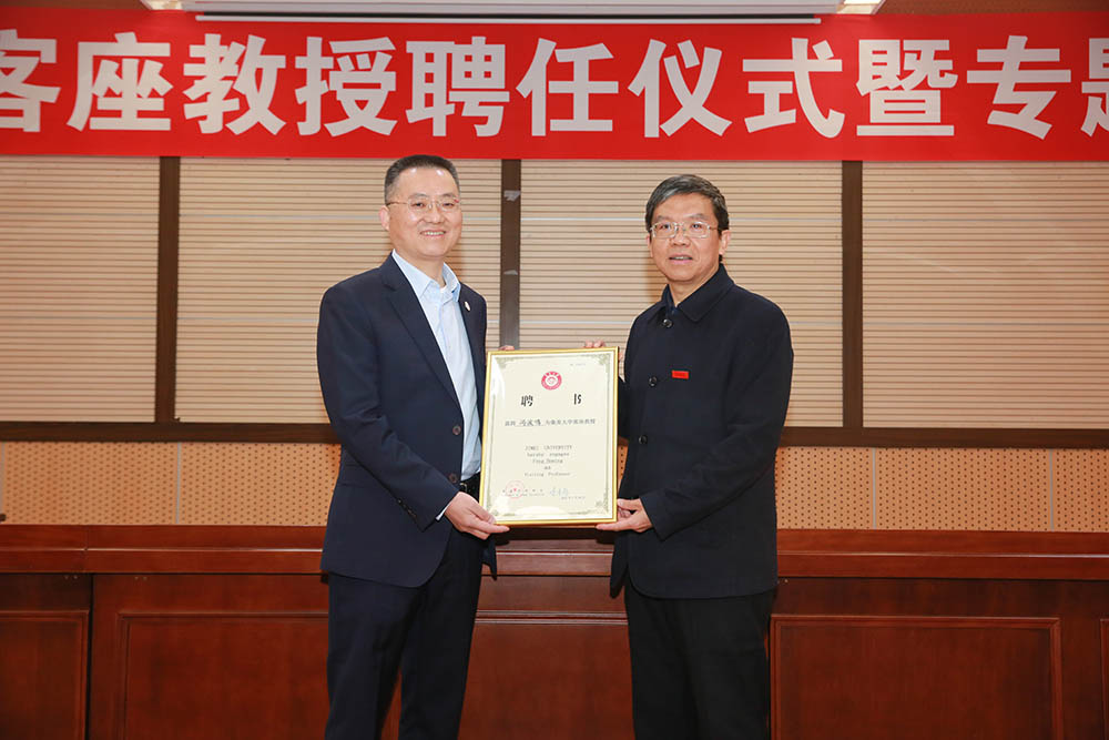 会后还举行了聘任仪式,冯波鸣被我校聘为客座教授,李清彪代表学校颁发聘书。