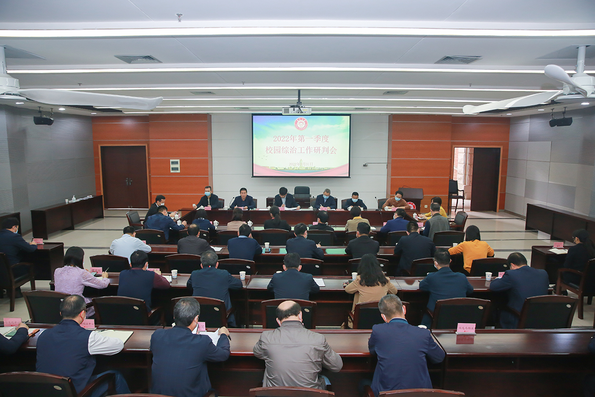 3月31日,我校召开2022年第一季度校园综治工作研判会,校党委副书记洪文建,校综治委各成员单位负责人、保卫部科级以上干部参加会议。