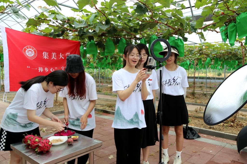 实践队在当地百果园和乡村主题咖啡馆,通过网络自媒体平台直播的方式,为当地开辟出一条“直播+电商”的新型农业发展之路。实践队深入同安区三秀山村,追寻劳动教育历史沿革,深入了解当地知青文化,体会不同时代背景下的劳动教育,将乡村资源与劳动教育高效结合,为乡村振兴提供劳动教育新思路,为新农村建设贡献力量。