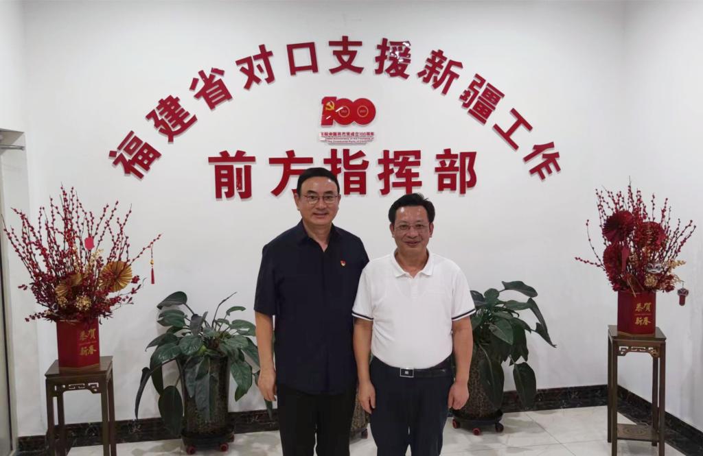 在福建省援疆工作前方指挥部,总指挥长、昌吉州党委副书记王中向沈灿煌一行介绍了援疆工作开展情况,特别是7月15日,习近平总书记视察新疆时亲切接见第十批援疆干部人才代表并合影的情景以及对援疆工作提出的明确要求。指挥部两位校友汇报了援疆工作情况,沈灿煌对援疆干部贯彻新时代党的治疆方略,坚守“舍家报国、忠诚担当、团结奉献、创新奋进”的援疆精神表示钦佩和赞赏。