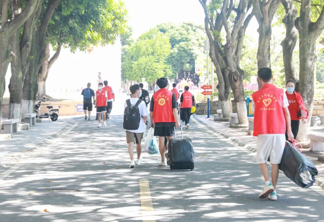 报到当天清晨,300余名青年志愿者在厦门北站、厦门站、高崎机场和集美长途汽车站,以饱满的精神状态热情迎接2022级新生。在各校区门口,校学生会、青年志愿者协会、校自律会设立青年先锋岗,为新生及时提供咨询和搬运行李服务。