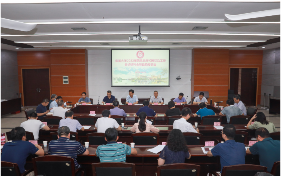 9月27日,校党委副书记洪文建主持召开2022年第三季度校园综治工作研判暨维稳专题会。校综治委成员单位负责人、各学院党委副书记、党委保卫部全体科级干部参加会议。