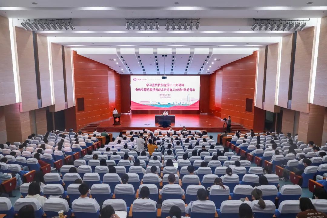 他希望全校青年学生要牢记习近平总书记教诲,坚定理想信念,做有理想的新时代大学生,练就过硬本领,做敢担当的新时代大学生;勇于开拓创新,做能吃苦的新时代大学生,矢志艰苦奋斗,做肯奋斗的新时代大学生。希望全校政工干部认真学习、深刻领会,用党的二十大精神武装头脑,加强宣传、形成声势,用党的二十大精神凝心聚力,真抓实干、学以致用,用党的二十大精神指引前行。