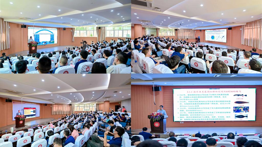会上,桂建芳、包振民、麦康森、陈松林四位院士分别作题为《多倍体鲫复合种基因组的演化机制及其育种新突破》《海洋动物全基因组选择育种的研究进展》《开拓深远海养殖新空间是保障我国食物供给的重大战略需求》《海水鱼类生物技术创新与种业发展》的报告。