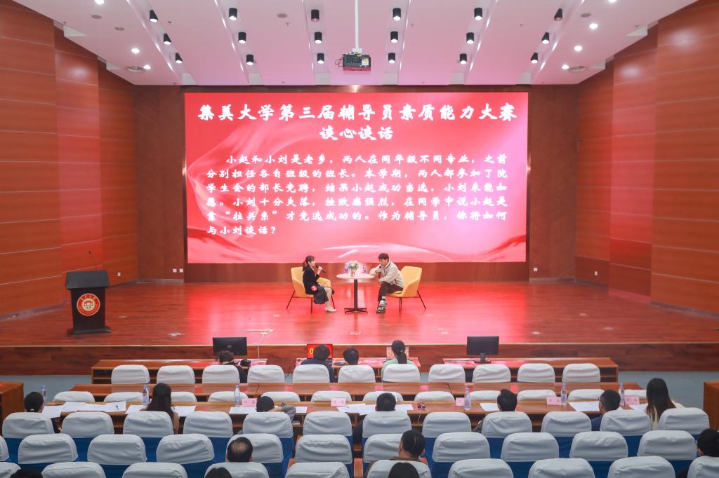本次辅导员素质能力大赛是我校学习贯彻落实党的二十大精神的有益实践。大赛展示的是辅导员的青春风采,交流的是辅导员对职业技能特征的理解、诠释和践行。近年来,学校围绕立德树人根本任务,多措并举加强辅导员队伍建设,明确辅导员具有教师和党政管理干部双重身份,落实各项津贴待遇,形成了干部教师双重管理、双线发展培养机制。同时,通过骨干培训、辅导员沙龙、示范工作室建设、职业能力大赛、优秀辅导员评选等举措,不断提升辅导员的理论水平、专业素养和综合能力,努力打造一支政治强、业务精、有责任、敢担当的新时代高素质辅导员队伍。