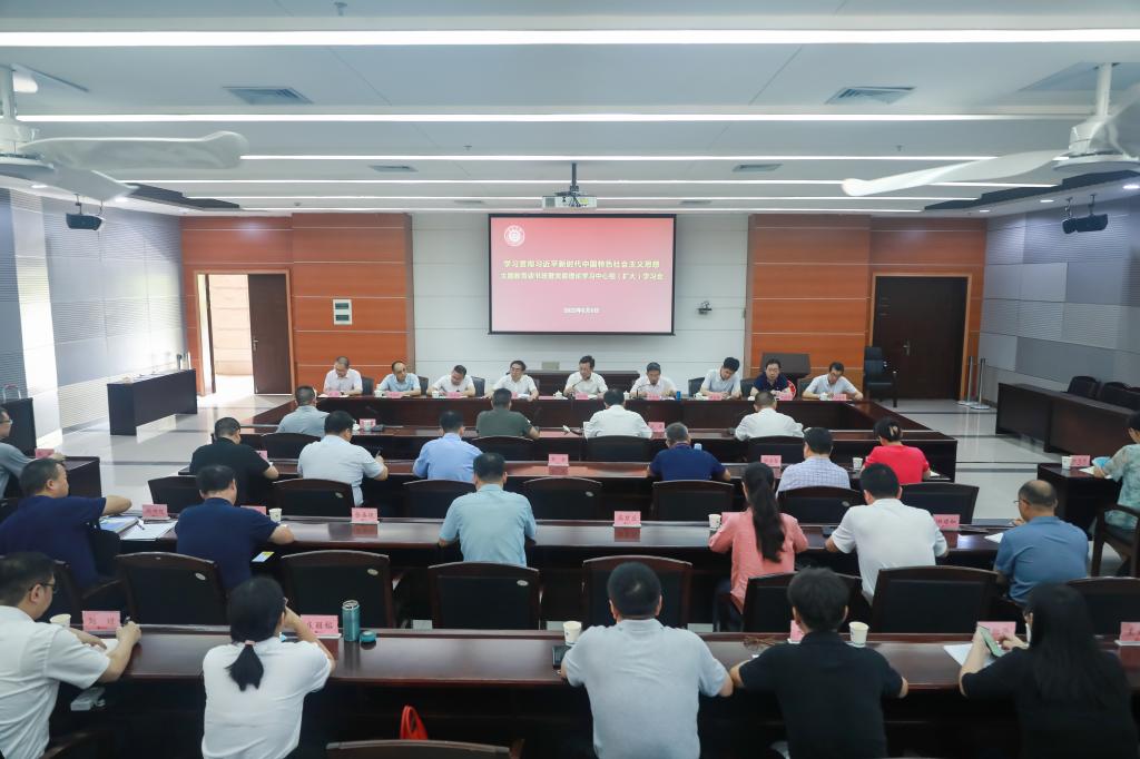 6月6日下午,我校召开学习贯彻习近平新时代中国特色社会主义思想主题教育读书班暨党委理论学习中心组(扩大)学习会。校领导,机关各部处、教辅机构及其他机构负责人,各学院党委书记、院长(含主持工作副院长)参会。会议由校党委书记沈灿煌主持。