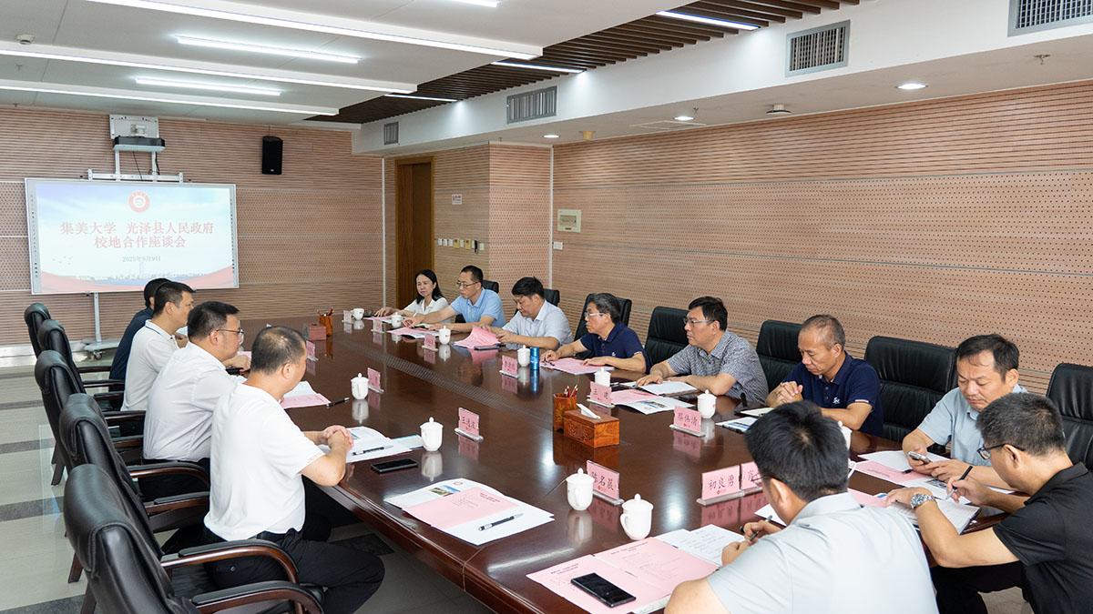 9月9日上午,南平市光泽县县长王贵一行到我校洽谈校地产学研合作事宜。校长李清彪会见来宾并座谈交流。学校办公室、发展规划处、招生办、科研处、航海学院、水产学院、海洋食品与生物工程学院、体育学院等单位负责人参会。